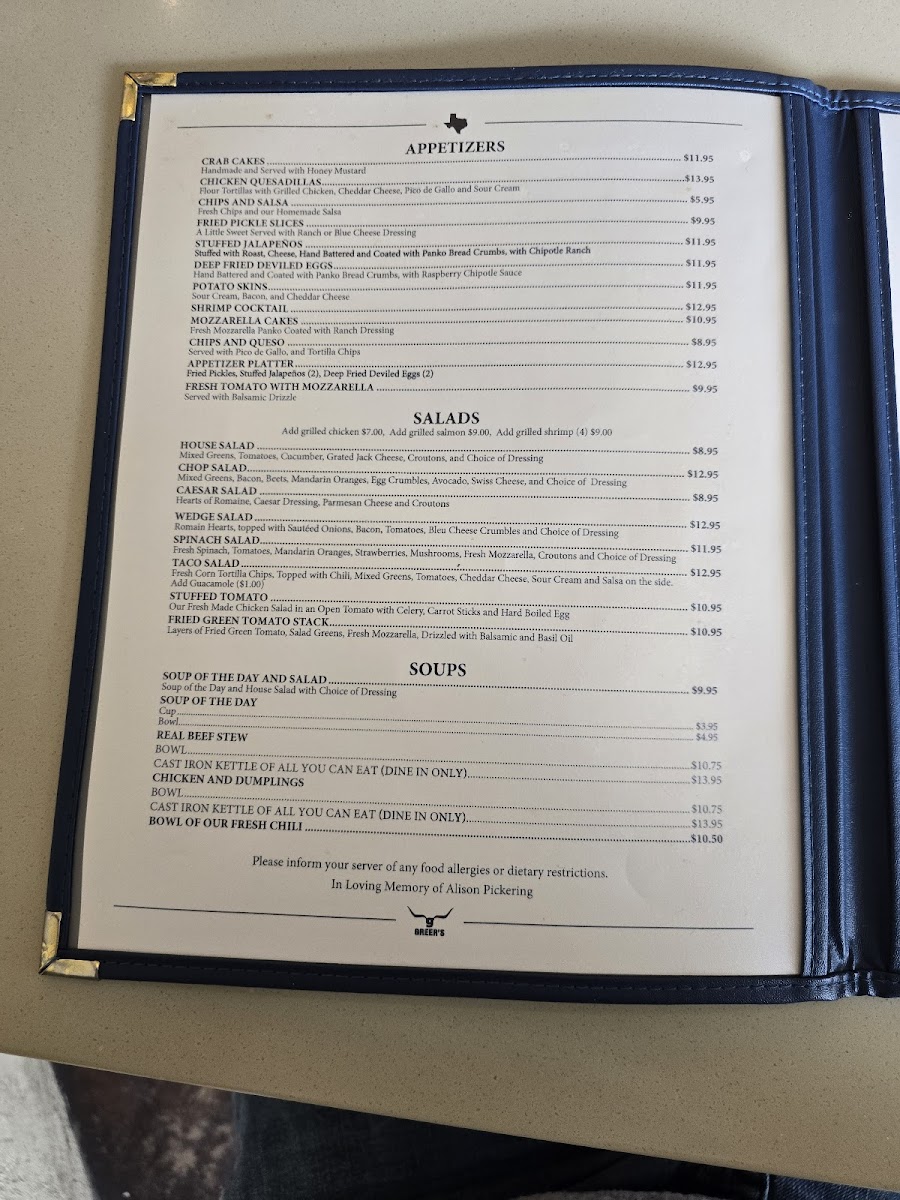 Welcome to Greer's Ranch Cafe, a charming eatery nestled in the heart of Stephenville, Texas. This cafe beautifully marries historic charm with modern comfort, making it an ideal spot for breakfast, lunch, or dinner. Guests rave about the fried pickles, considered the best in town, and the generous portions, like the flavor-packed blueberry pancakes loaded with fresh berries.